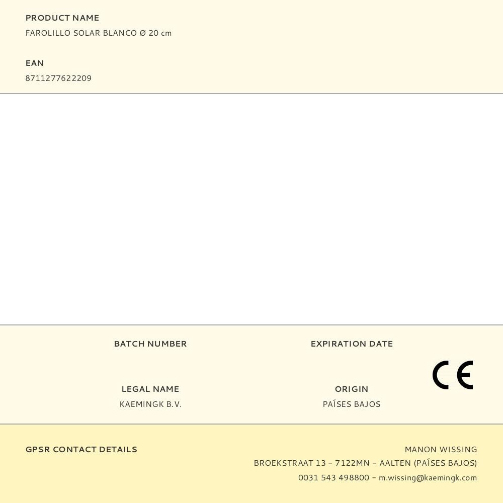 FAROLILLO SOLAR BLANCO Ø 20 cm