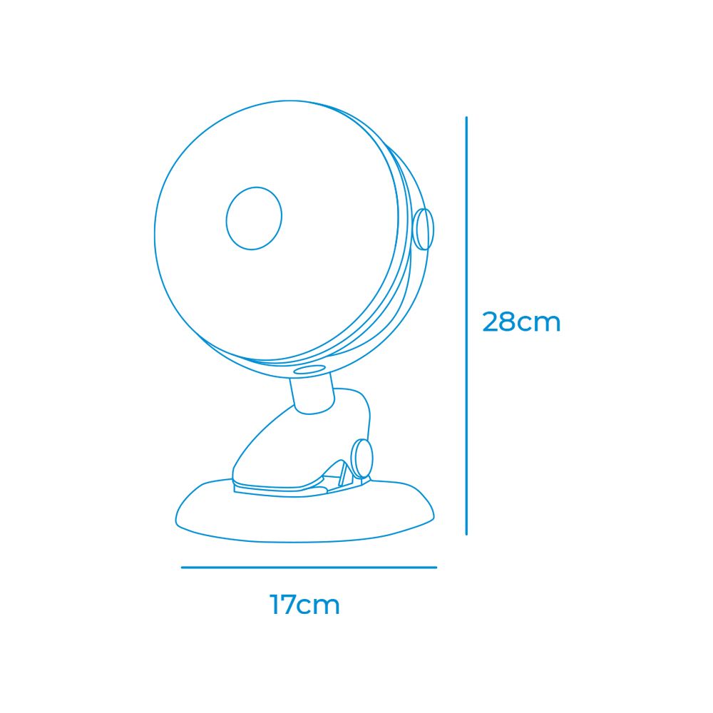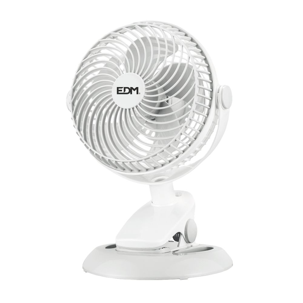MINI VENTILADOR RECARGABLE CON PINZA DE CONEXIÓN USB, 3 NIVELES DE POTENCIA - 360 m3/h. 31,6 dB. Ø DE ASPAS: 14 cm. DOBLE FUNCIONALIDAD: PUEDE UTILIZARSE COMO VENTILADOR CON PINZA PARA SUJETARLO EN CUALQUIER LUGAR O COMO VENTILADOR DE BASE PARA SUPERFICIES PLANAS. FUNCIONA CON MOTOR SIN ESCOBILLA, ULTRA SILENCIOSO. TIEMPO ESTIMADO DE CARGA ENTRE 2 Y 4 HORAS. PERMITE UN USO CONTINUADO ENTRE 2,2 h Y 5,5 h - FUNCIONA CON BATERÍA DE 2000 mAh O CONECTADO USB 5 V (CABLE USB 80 cm INCLUIDO). MEDIDAS: Ø 17 x 18 x 28 cm