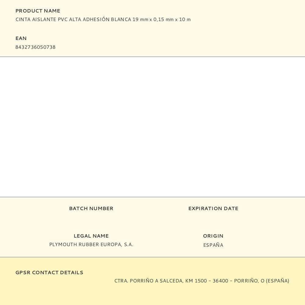 CINTA AISLANTE PVC ALTA ADHESIÓN BLANCA 19 mm x 0,15 mm x 10 m