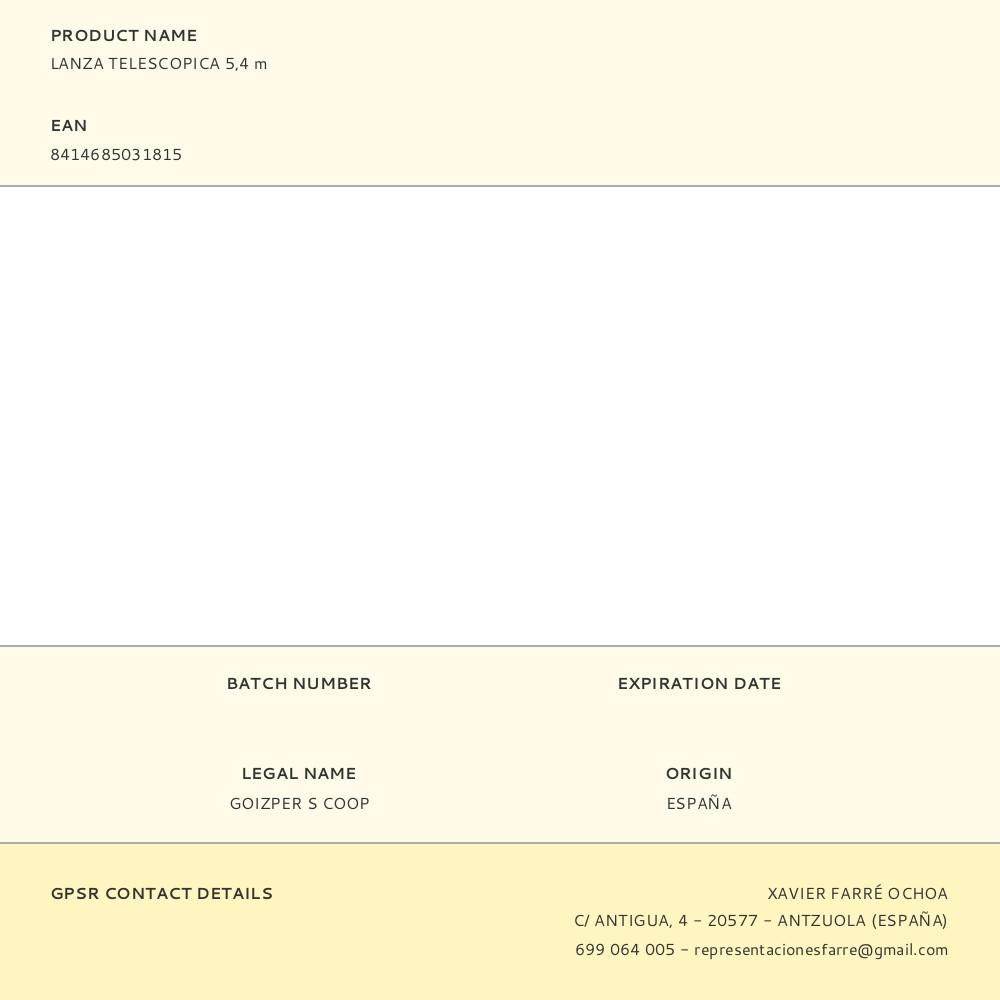 LANZA TELESCÓPICA DE FIBRA DE VIDRIO. LONGITUD MÁXIMA 5,4 m. PARA SER USADA CON PULVERIZADORES MANUALES Y ELÉCTRICOS, TAMBIÉN APTO PARA MODELOS IK FOAM PRO 12, IK FOAM 9. INCLUYE ADAPTADOR PARA PULVERIZADORES DE PREVIA PRESIÓN Y BOQUILLA DE DISCO-CONO.