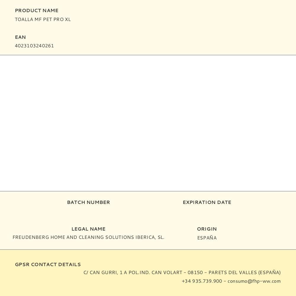 TOALLA MF PET PRO XL 65 x 100 cm