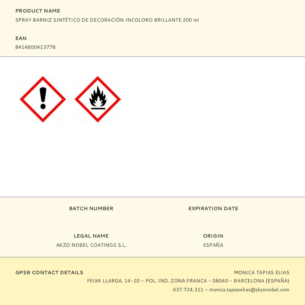 SPRAY BARNIZ SINTÉTICO DE DECORACIÓN INCOLORO BRILLANTE 200 ml