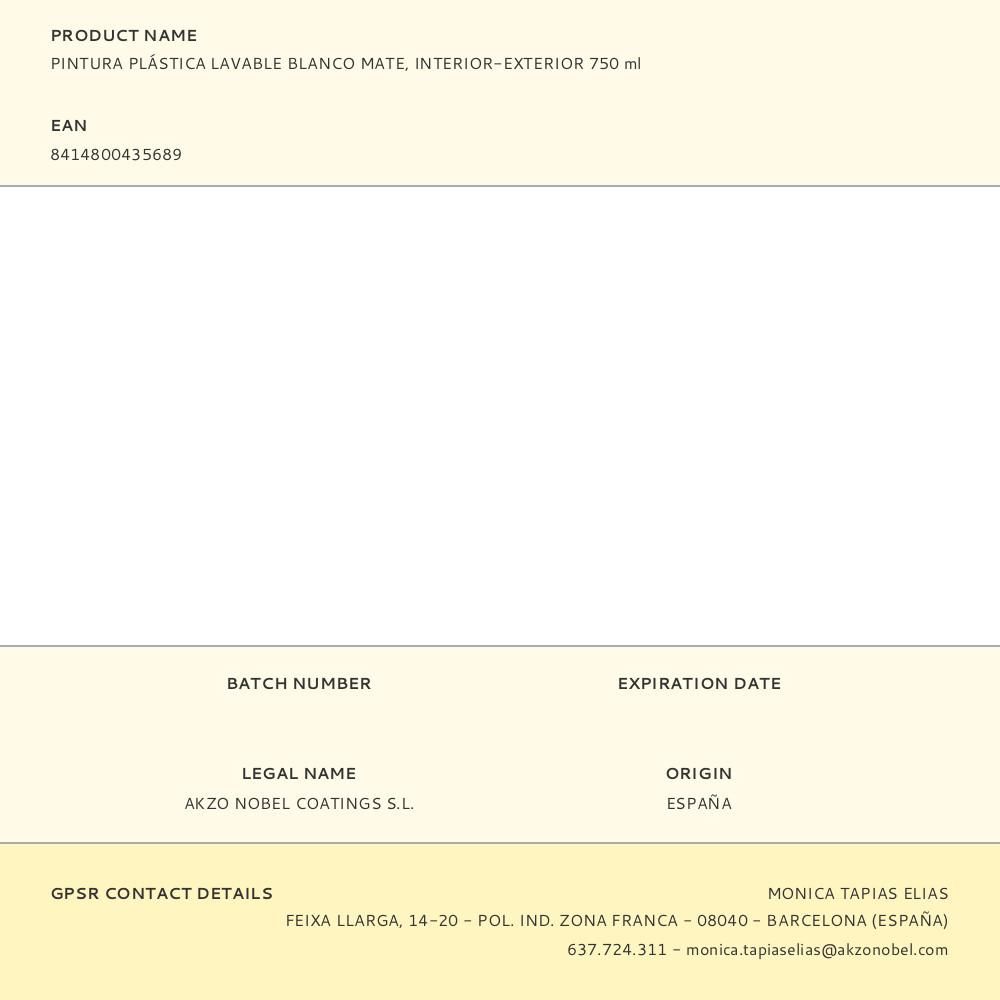 PINTURA PLÁSTICA VINÍLICA VEOVA INTERIOR/EXTERIOR ECO LAVABLE COBERTURA TOTAL BLANCO MATE 750 ml. CUBRE CON UNA SOLA CAPA, DECORA PAREDES Y TECHOS CON UN ACABADO DE CALIDAD Y MUY RESISTENTE. SIN OLOR, NO GOTEA NI SALPICA. CON CONSERVANTE ANTI-MOHO. RESPETUOSO CON EL MEDIO AMBIENTE, RENDIMIENTO APROXIMADO 7,5 m², SECADO EN 30-60 min, REPINTADO EN 6-8 h