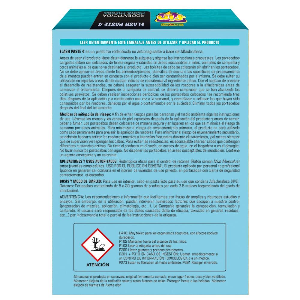 CEBO EN PASTA LISTO PARA SU USO EFICAZ PARA EL CONTROL DE RATONES TANTO JUVENILES COMO ADULTOS. RODENTICIDA NO ANTICOAGULANTE MUY EFICAZ CON MENOS INGESTA Y SIN RESISTENCIAS. 120 g