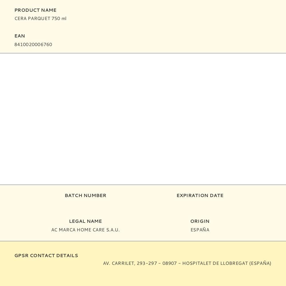 CERA BARNIZ ESPECIAL PARQUET, PARA TODO TIPO DE SUELOS DE PARQUET, COMO TARIMAS Y FLOTANTES O LAMINADOS, 750 ml
