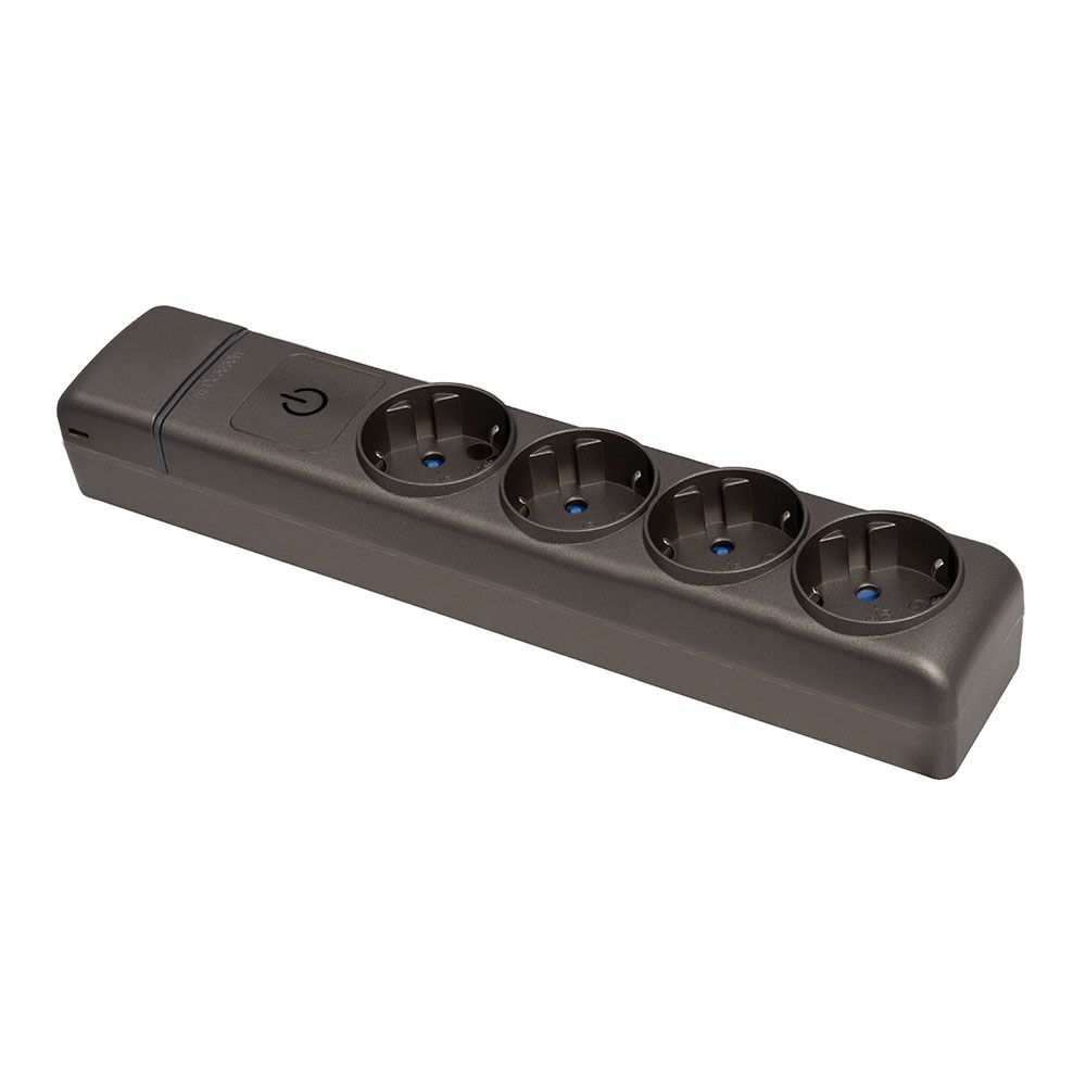 BASE MÚLTIPLE 4 TOMAS 2P+T SCHUKO, 16 A 250 V~.GRAFITO, CON INTERRUPTOR LUMINOSO