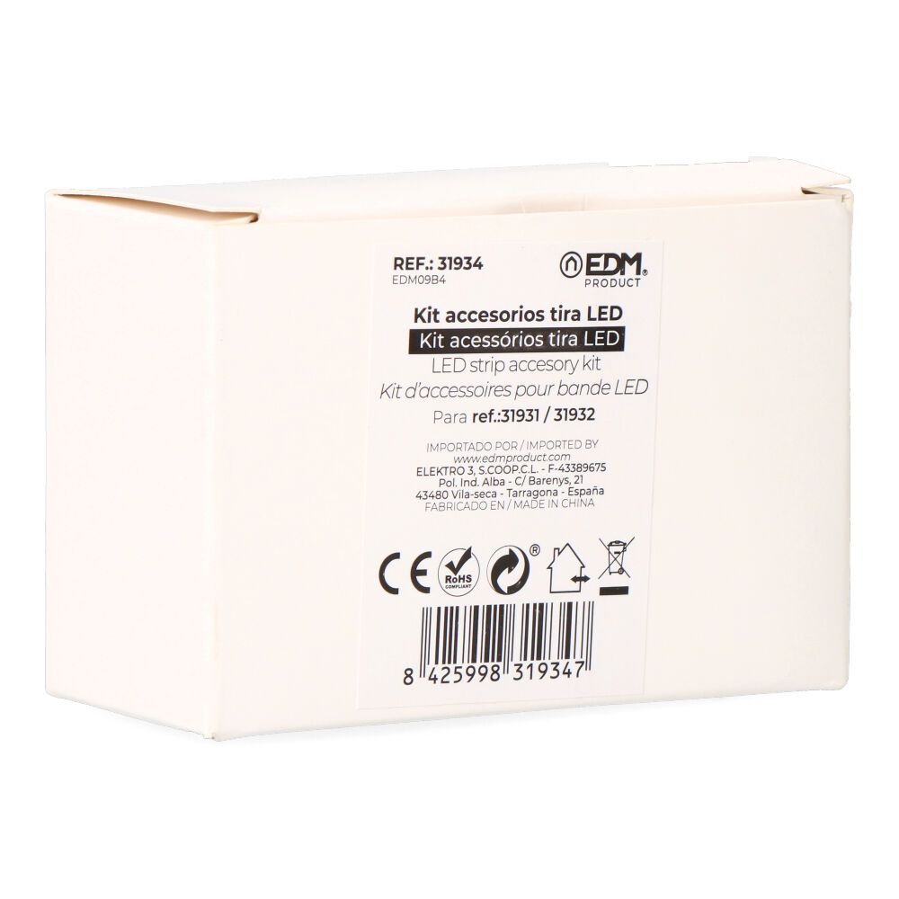 JUEGO DE ACCESORIOS PARA TIRAS DE LED, SE COMPONE DE 4 CONECTORES, 4 TAPAS FINALES, 10 SUJECIONES DE SILICONA, 20 TORNILLOS PARA LAS SUJECIONES Y UN TUBO DE SELLANTE DE SILICONA. PARA REF: 31931 / 31932