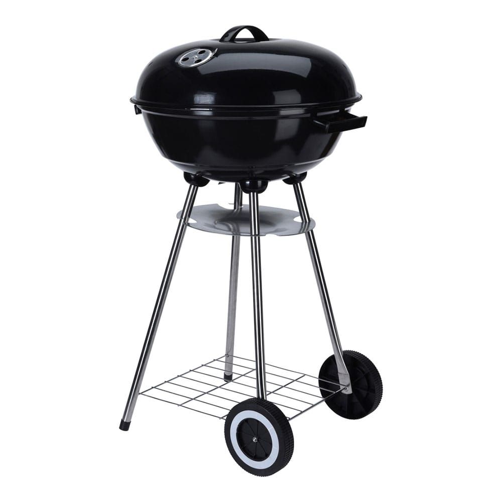 BARBACOA DE CARBÓN DE PIE CON TAPA Y RUEDAS, Ø46 x 84 cm