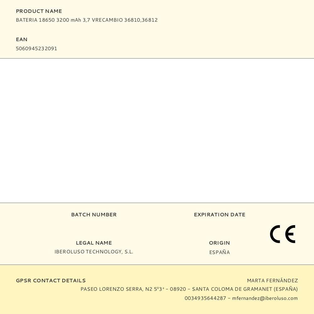 BATERIA 18650 3200 mAh 3,7 VRECAMBIO 36810,36812