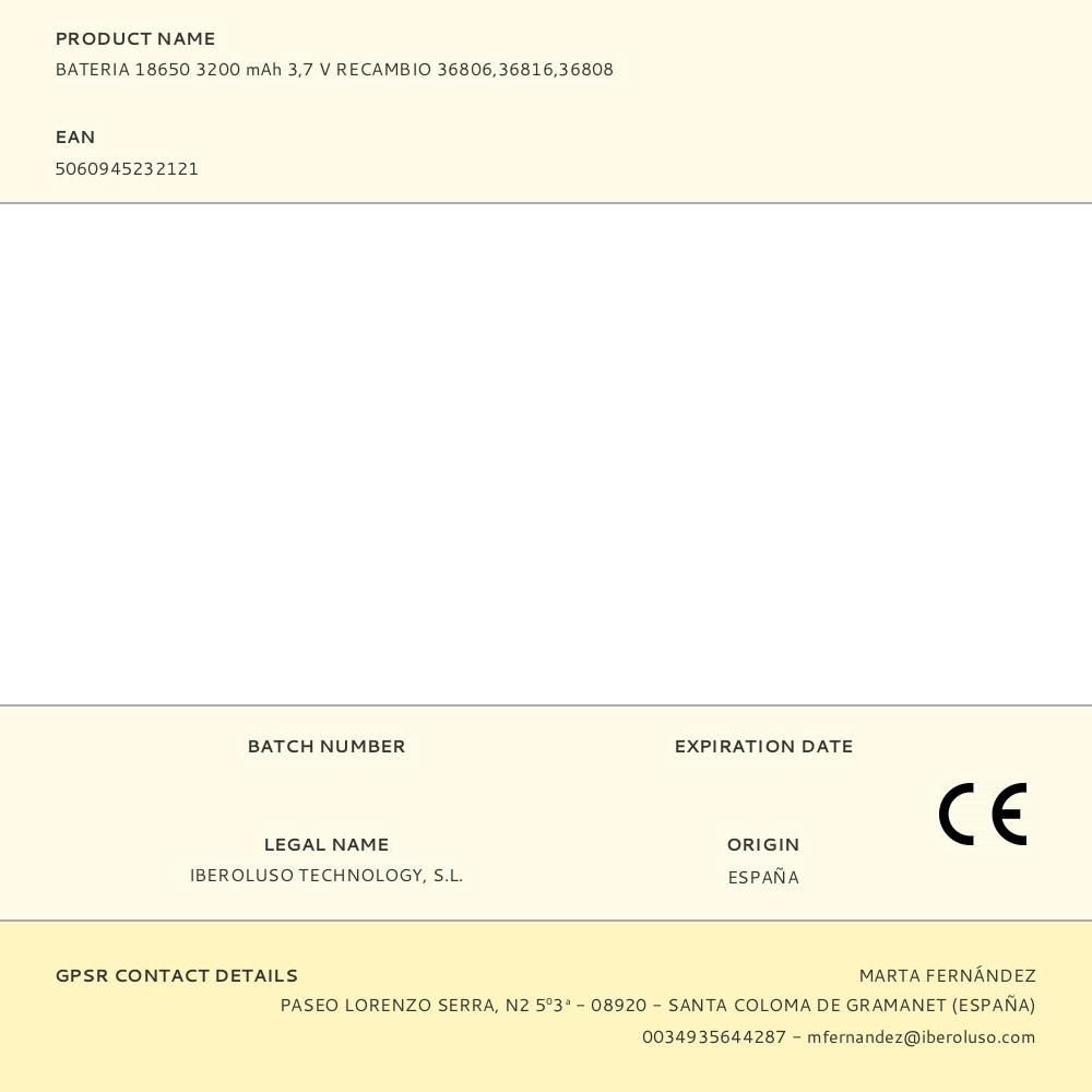 BATERIA 18650 3200 mAh 3,7 V RECAMBIO 36806,36816,36808