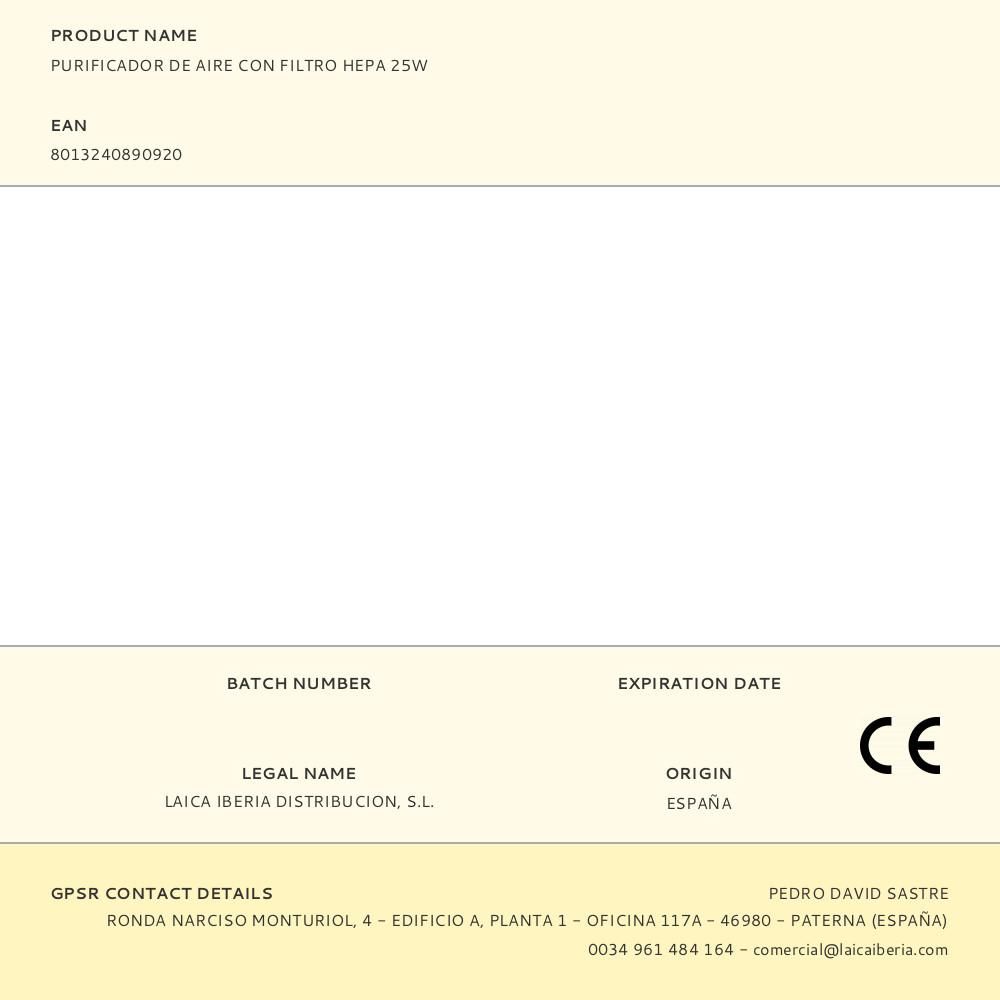 PURIFICADOR DE AIRE CON FILTRO HEPA 25W