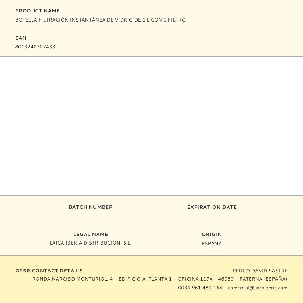 BOTELLA FILTRACIÓN INSTANTÁNEA DE VIDRIO DE 1 L CON 1 FILTRO