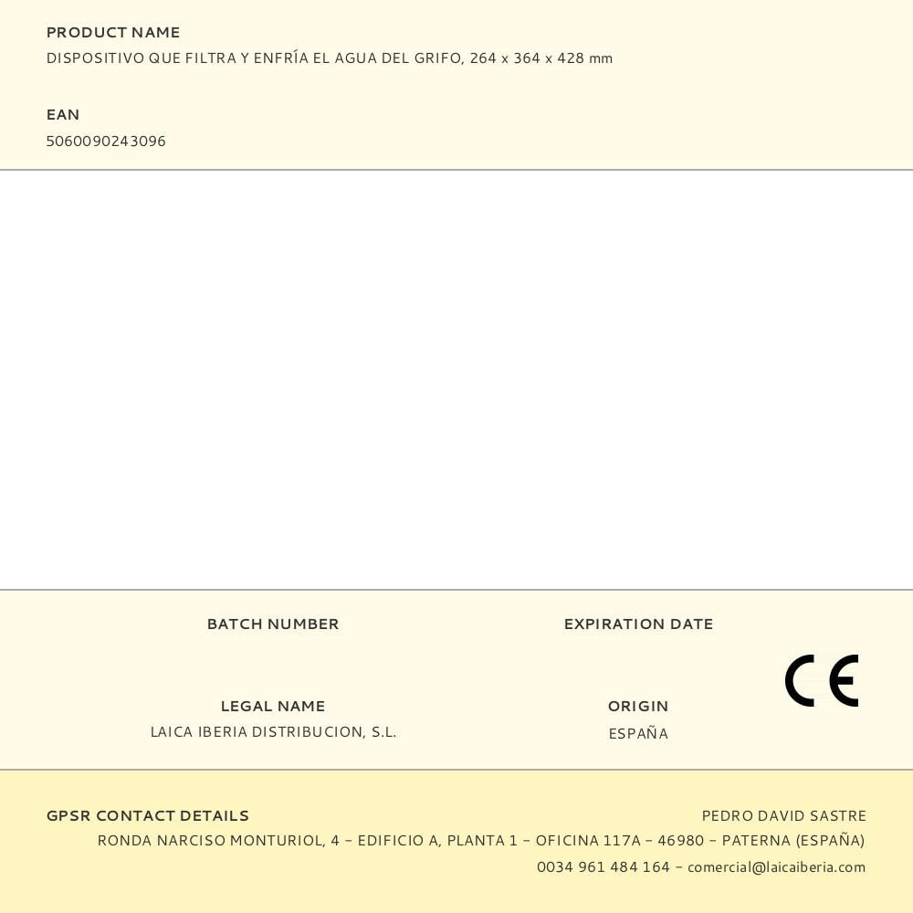 DISPOSITIVO QUE FILTRA Y ENFRÍA EL AGUA DEL GRIFO, 264 x 364 x 428 mm