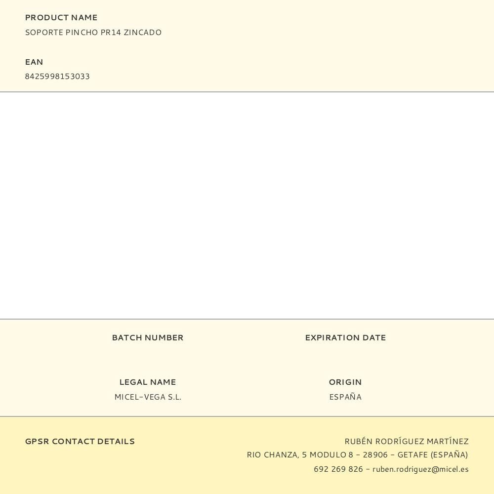 SOPORTE PINCHO PR14 ZINCADO. MATERIAL ACERO ZINCADO. MEDIDAS 46 x 26 mm