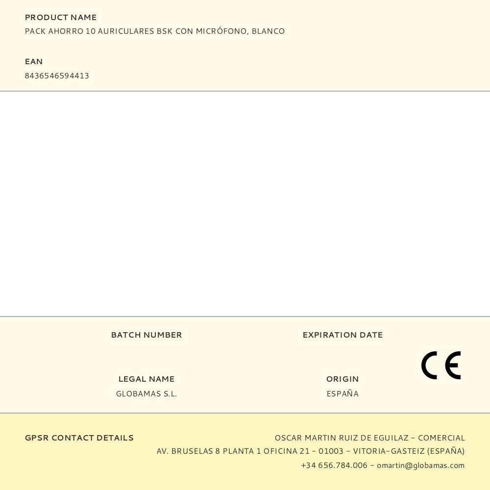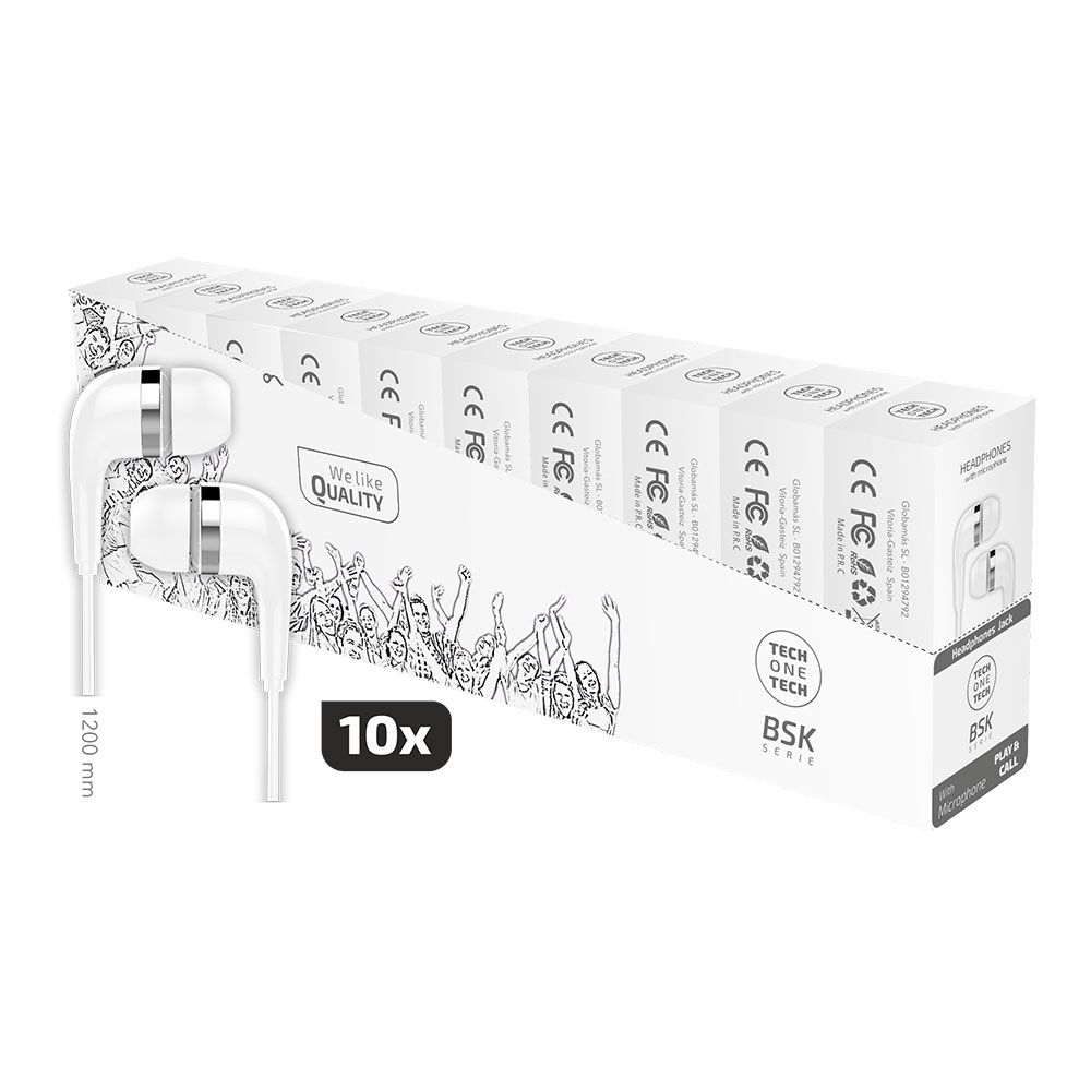 PACK AHORRO 10 AURICULARES BSK CON MICRÓFONO, BLANCO