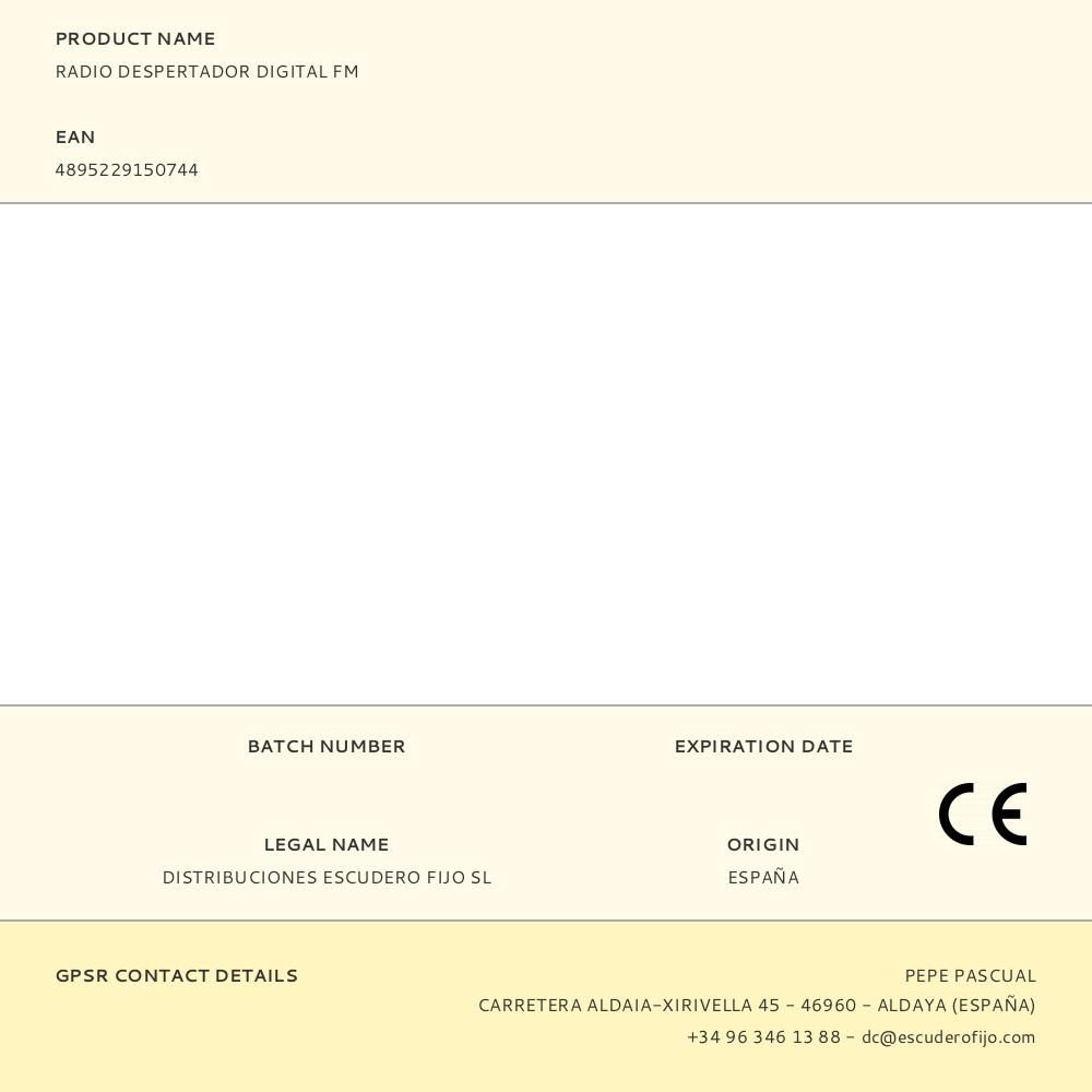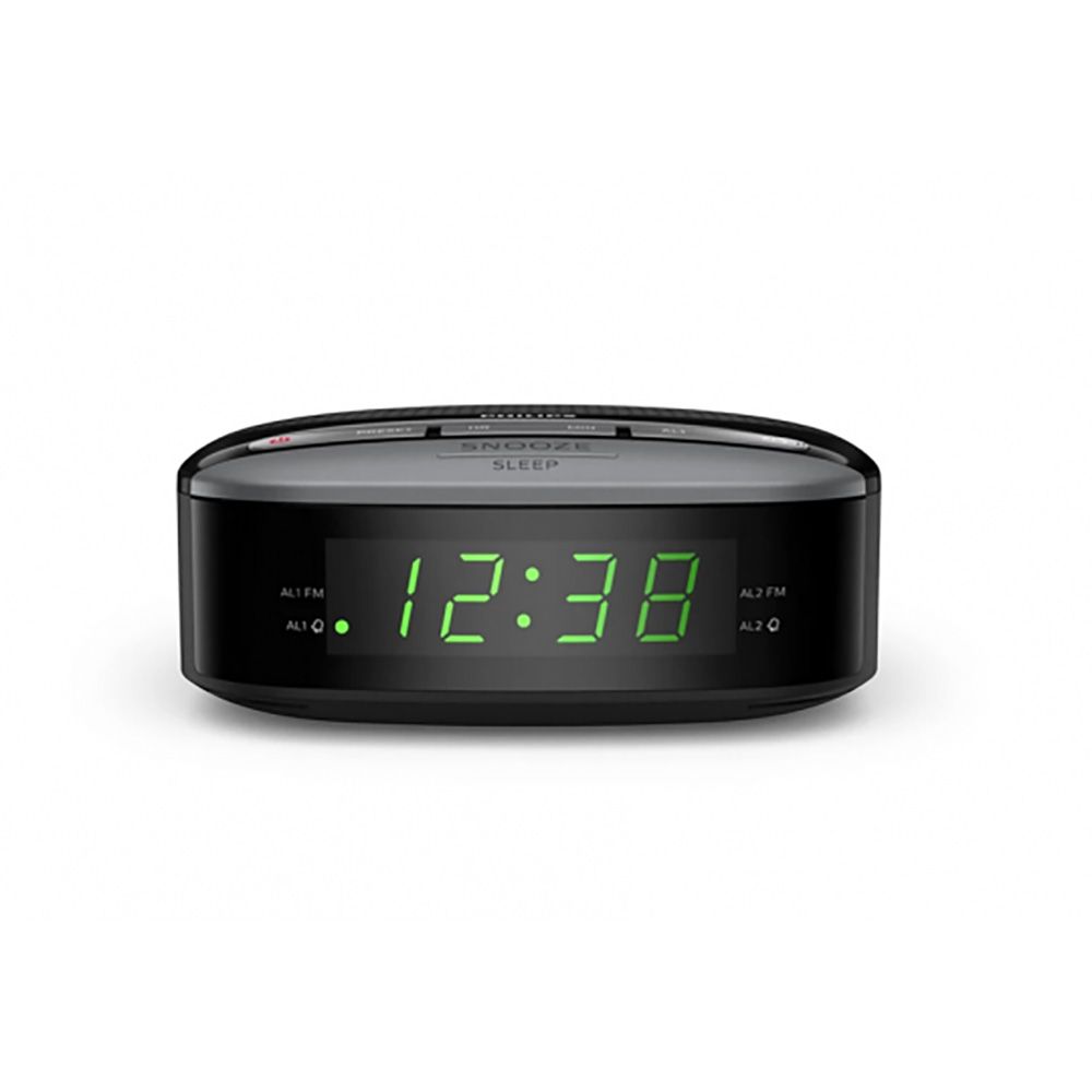 RADIO DESPERTADOR DIGITAL FM. SISTEMA DE SONIDO MONO, POTENCIA DE SALIDA(RMS) 200 Mw. EL SINTONIZADOR FM OFRECE UNA RECEPCIÓN CLARA QUE PERMITE CONFIGURAR HASTA 10 PRESINTONÍAS DE TU EMISORAS. FUNCIONES: SE PUEDE CONFIGURAR EL TEMPORIZADOR DEL RELOJ PARA QUE REPRODUZCA LA RADIO DURANTE UN MÁXIMO DE 2 h, TRANSCURRIDO EL TIEMPO SE APAGARÁ. FUNCIÓN DE ALARMA DUAL, PERMITE ESTABLECER 2 ALARMAS DIFERENTES, MIENTRAS QUE LA FUNCIÓN DE ALARMA SUAVE UTILIZA UN VOLUMEN DE RADIO QUE AUMENTA GRADUALMENTE PARA DESPERTARTE CON SUAVIDAD
