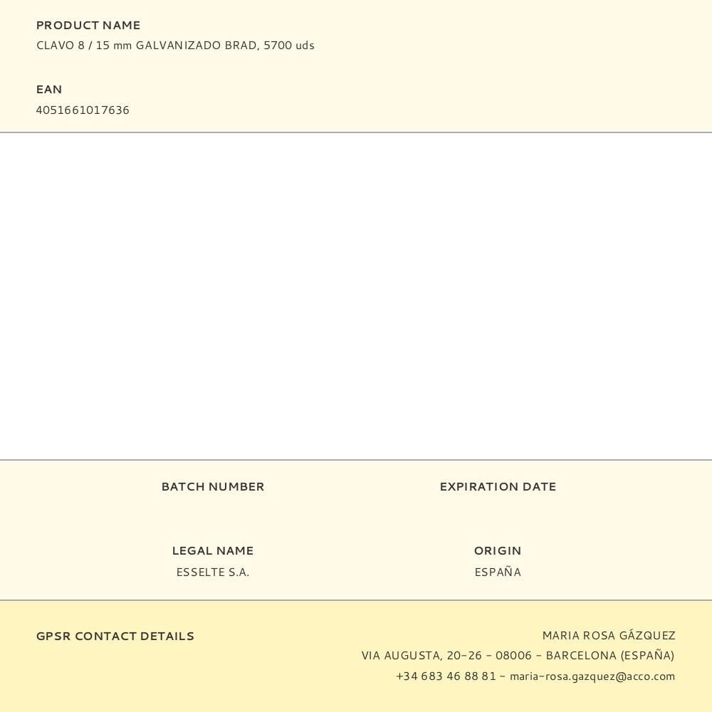 CLAVO 8 / 15 mm GALVANIZADO BRAD, 5700 uds