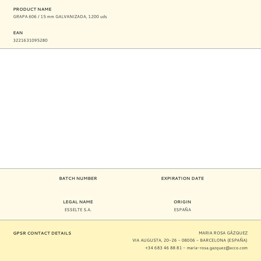 GRAPA 606 / 15 mm GALVANIZADA, 1200 uds