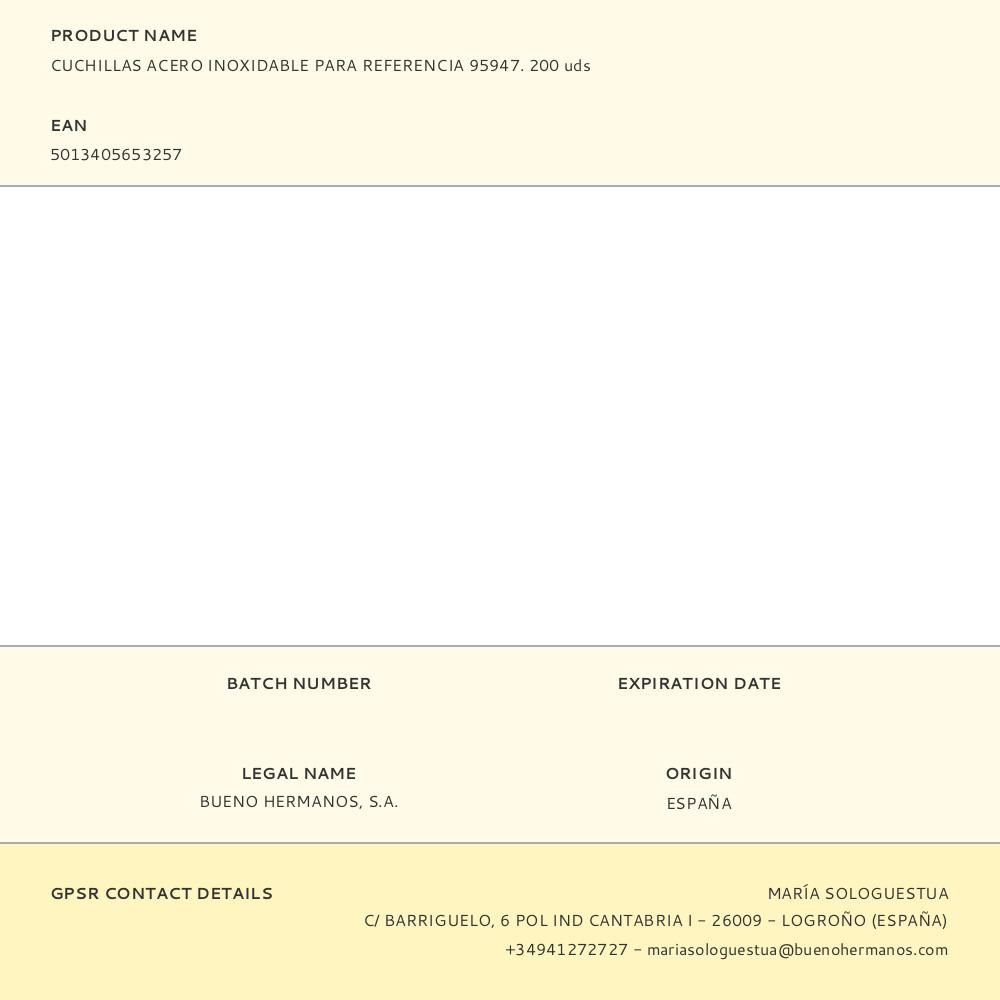 CUCHILLAS ACERO INOXIDABLE PARA REFERENCIA 95947. 200 uds