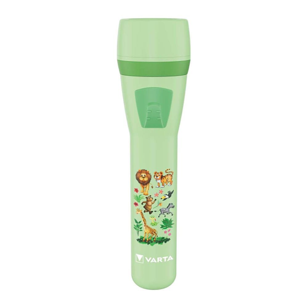 LINTERNA INFANTIL, DISEÑO TEMÁTICO DE LA SELVA CON ANIMALES. 10 Im, RANGO DE FOCO 4 m. MATERIAL PLÁSTICO ABS. NIVELES DE ILUMINACIÓN 1. BATERIA 2 x AA (INCLUIDAS). CON INTERRUPTOR DESLIZANTE. CUMPLE CON LA DIRECTIVA DE SEGURIDAD DE JUGUETES DE LA UE