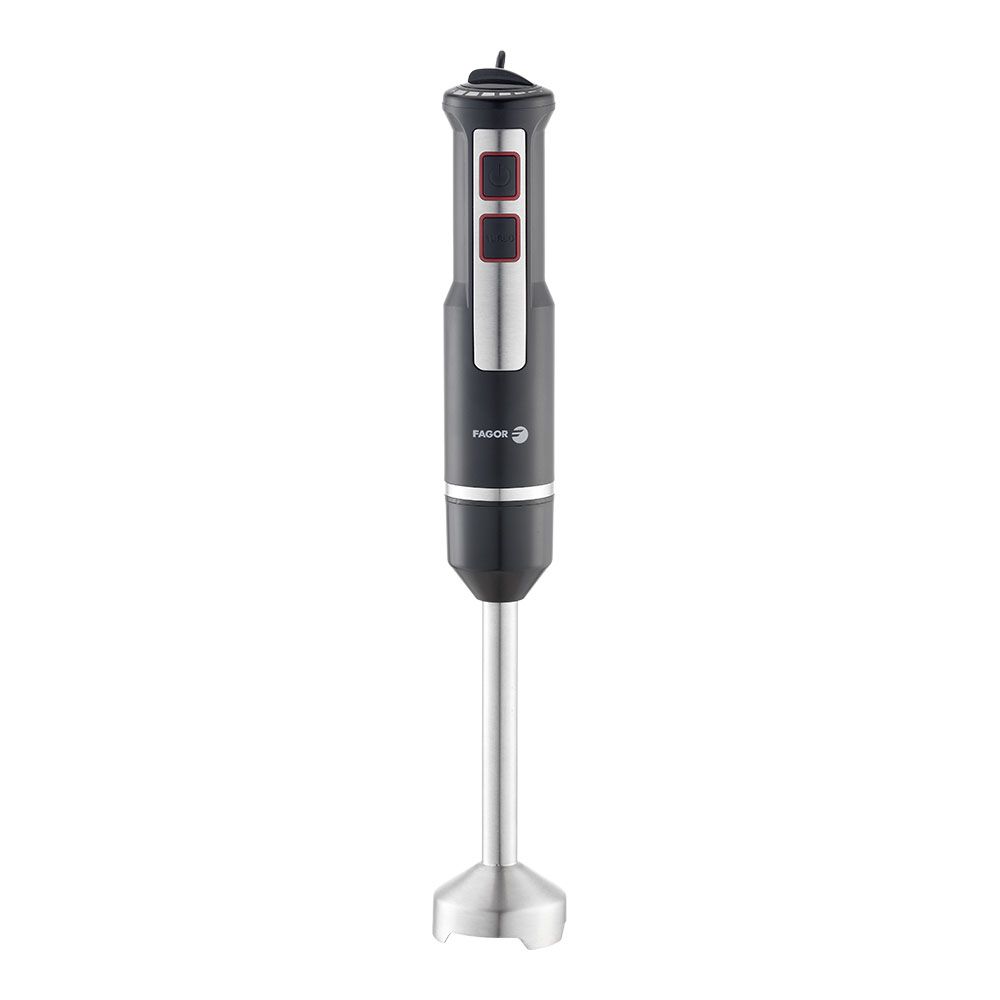 BATIDORA DE MANO DE 1000 W DE POTENCIA Y VOLTAJE DE 220-240 V / 50-60 Hz. CUERPO DE PLÁSTICO CON VARILLA DESMONTABLE DE ACERO INOXIDABLE. DISPONE DE DOS VELOCIDADES CON CONTROL AJUSTABLE E INDICADOR LED. INCLUYE ACCESORIO PICADORA 600 ml, VARILLA MEZCLADORA Y VASO MEDIDOR