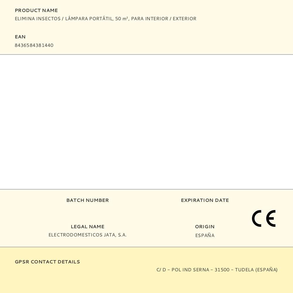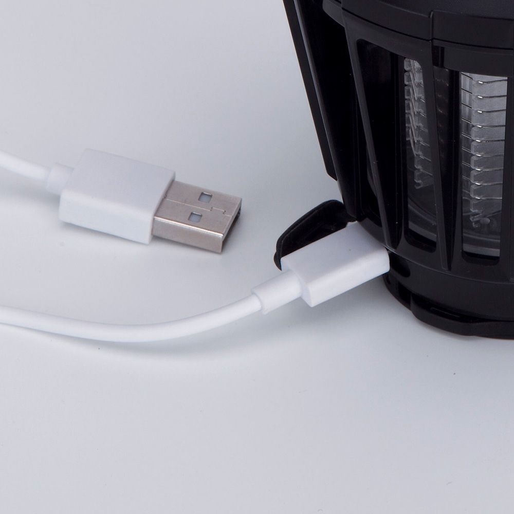 ELIMINA INSECTOS / LÁMPARA PORTÁTIL, ÁREA DE ACCIÓN 50 m², IPX6, 230 V, 5 W. ELIMINA TODO TIPO DE INSECTOS MEDIANTE DESCARGA ELÉCTRICA, LUZ ULTRAVIOLETA PARA ATRAER A LOS MOSQUITOS, SILENCIOSO. ES RECARGABLE CON CABLE USB (INCLUIDO) E INDICADOR DE CARGA LUMINOSO. LÁMPARA LED CON 3 NIVELES DE ILUMINACIÓN MAX 180 lm. PROTECTOR ANTICAÍDA DE SILICONA, CON GANCHO PARA COLGAR. RESPETUOSO CON EL MEDIO AMBIENTE, SIN EMISIÓN DE AGENTES CONTAMINANTES. DIMENSIONES Ø88 mm x 129 mm