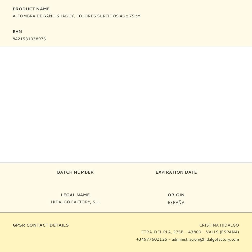 ALFOMBRA DE BAÑO SHAGGY RECTANGULAR, COLORES SURTIDOS, 100% POLIÉSTER CON HILOS DE 10 mm DE MICROFIBRA. LAVABLE A 30ºC. DIMENSIONES 45 x 75 cm