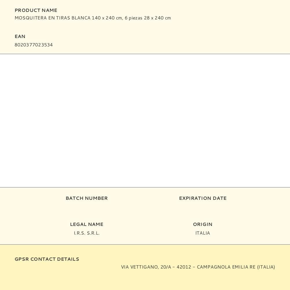 MOSQUITERA EN TIRAS PARA PUERTA, BLANCA, 140 x 240 cm, 6 piezas 28 x 240 cm