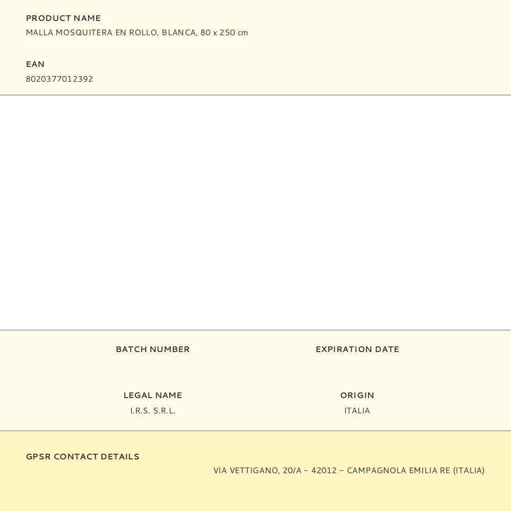 ROLLO DE MOSQUITERA, BLANCA, 80 x 250 cm