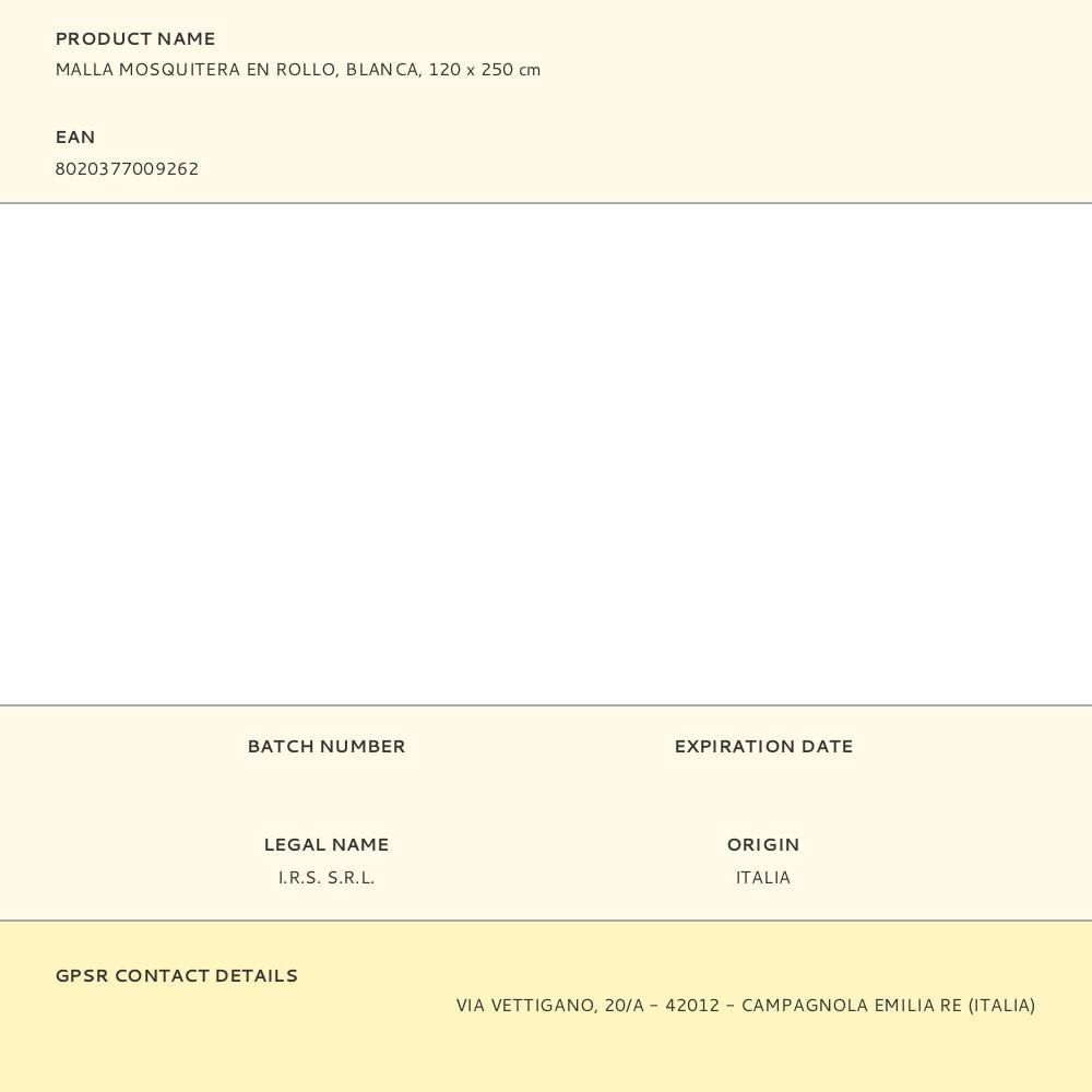 ROLLO DE MOSQUITERA, BLANCA, 120 x 250 cm