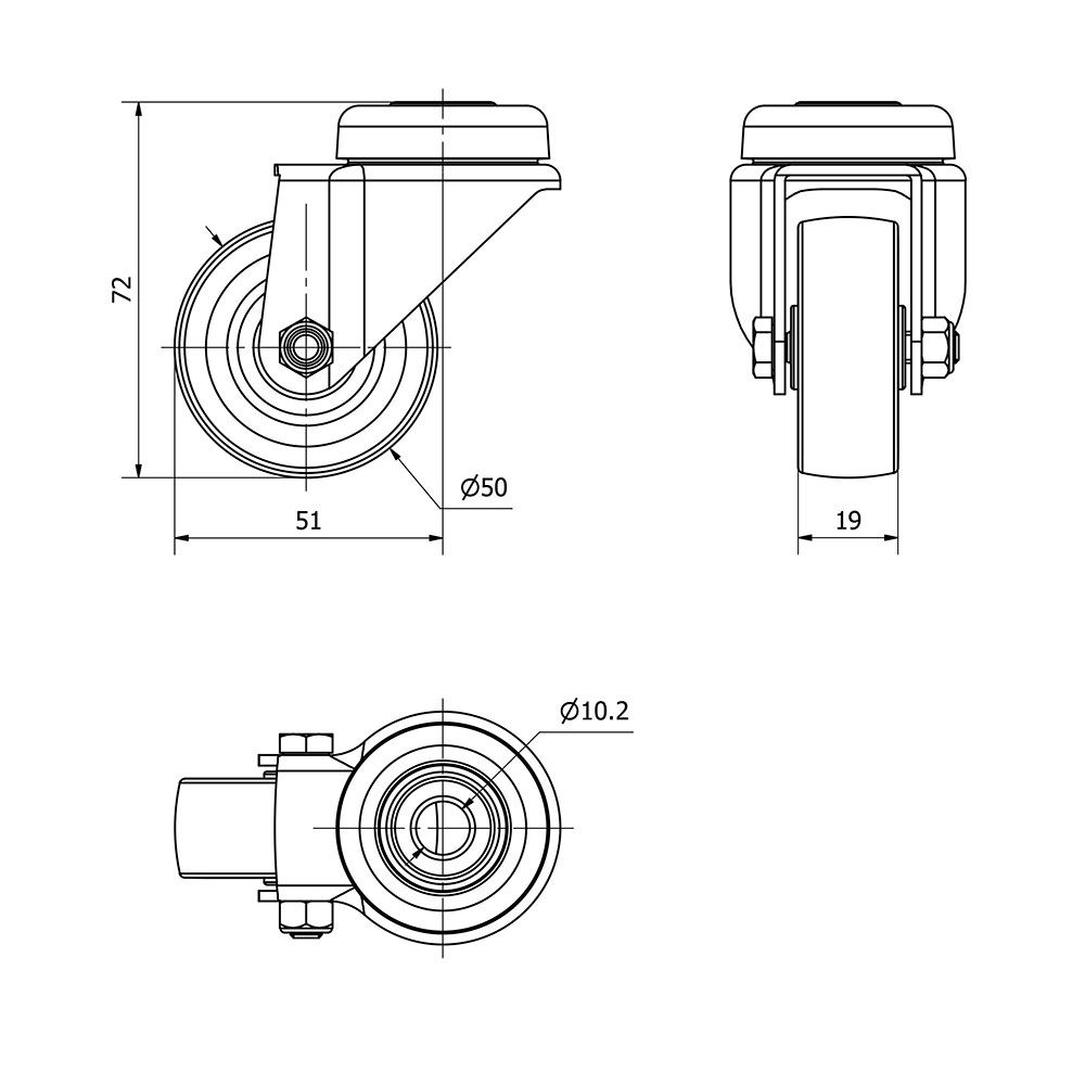 RUEDA GIRATORIA, AGUJERO Y EJE LISO, CARGA MÁX. 40 kg, MATERIAL: POLIAMIX - GOMA, COLOR GRIS, Ø 5 cm