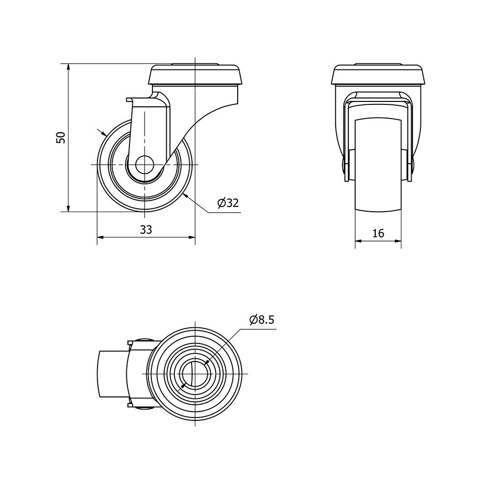 RUEDA GIRATORIA CON AGUJERO Y EJE LISO, COLOR GRIS, MATERIAL: POLIAMIX, CARGA MÁX. 15 kg, Ø 3 cm