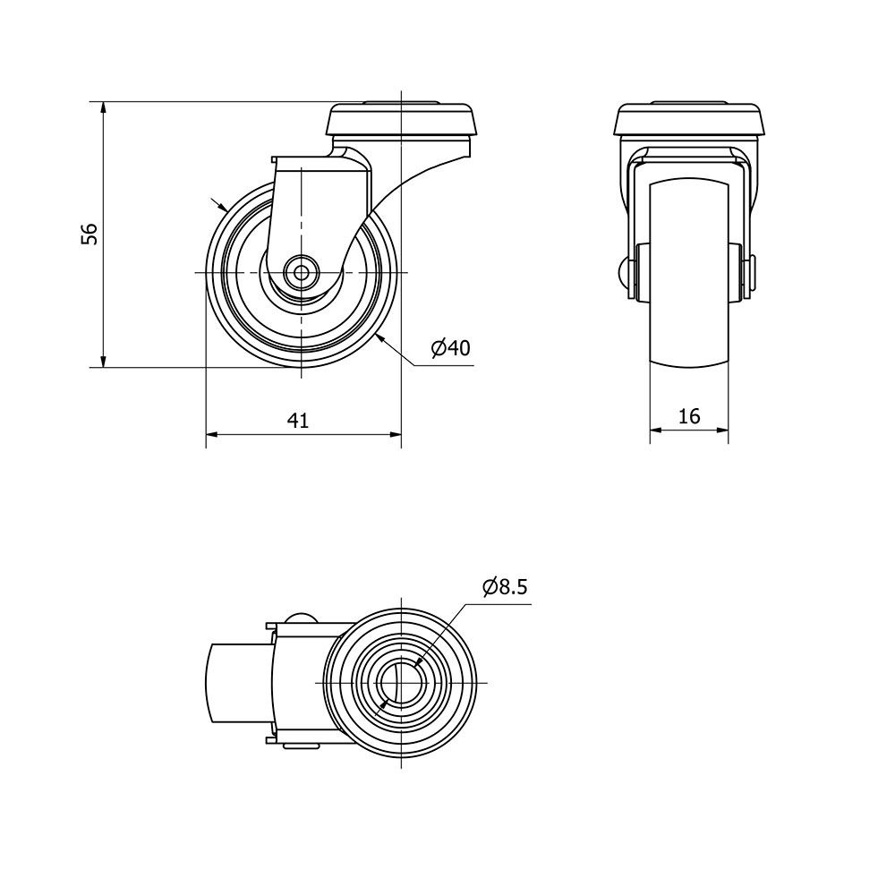 RUEDA GIRATORIA CON AGUJERO Y EJE LISO, COLOR GRIS, MATERIAL: POLIAMIX, CARGA MÁX. 22 kg, Ø 4 cm