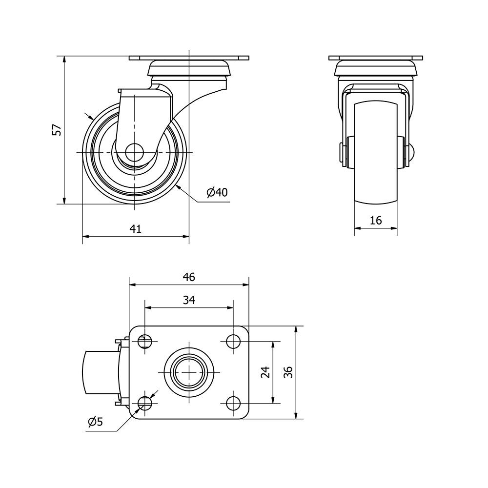 RUEDA GIRATORIA CON PLACA Y EJE LISO, COLOR GRIS, MATERIAL: POLIAMIX, CARGA MÁX. 22 kg, Ø 4 cm