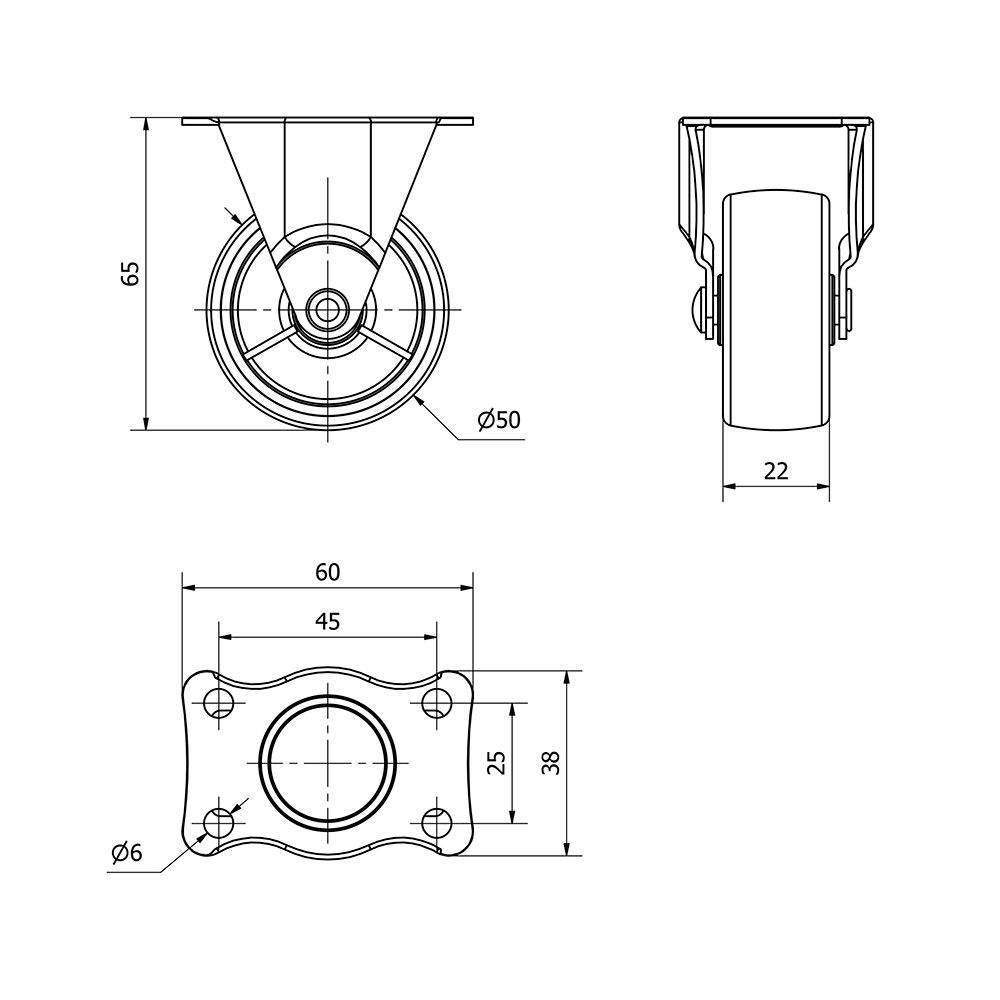 RUEDA FIJA CON PLACA Y EJE LISO, COLOR NEGRO, MATERIAL: POLIAMIX, CARGA MÁX. 30 kg, Ø 5 cm