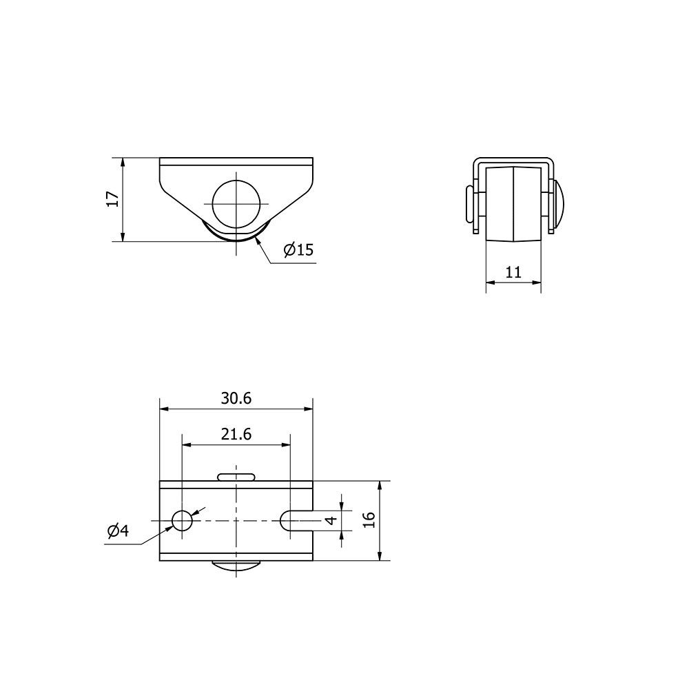 RUEDA FIJA DE GOMA CON PLACA Y EJE LISO DE DOS FIJACIONES, COLOR GRIS, CARGA MÁX. 20 kg, Ø 1,5 cm