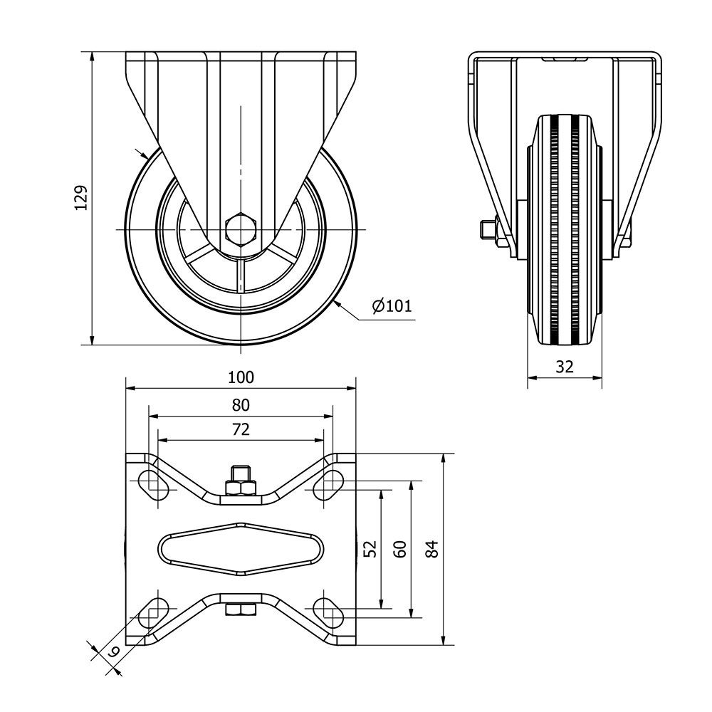 RUEDA FIJA CON PLACA Y EJE LISO, COLOR NEGRO, MATERIAL: POLIAMIX - GOMA, CARGA MÁX. 80 kg, Ø 10 cm