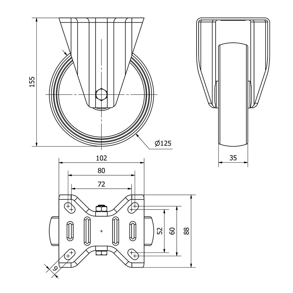 RUEDA FIJA CON PLACA Y EJE LISO, COLOR BLANCO, MATERIAL: POLIAMIX, CARGA MÁX. 170 kg, Ø 12,5 cm