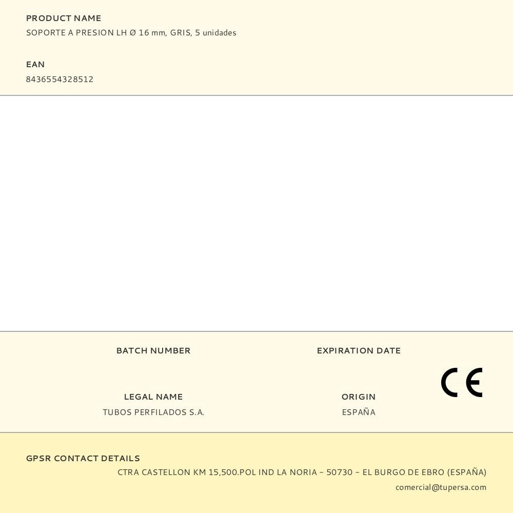 SOPORTE A PRESION LH Ø 16 mm, GRIS, 5 unidades