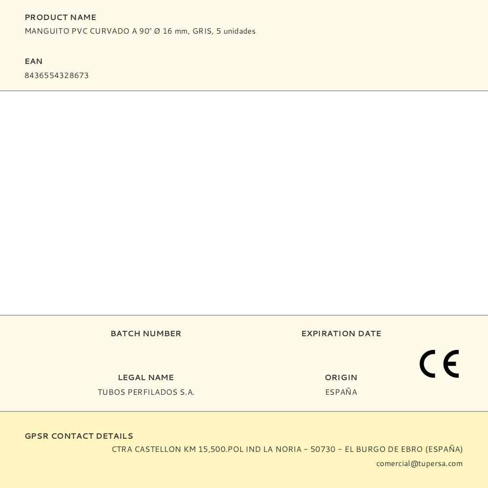 MANGUITO PVC CURVADO A 90° Ø 16 mm, GRIS, 5 unidades