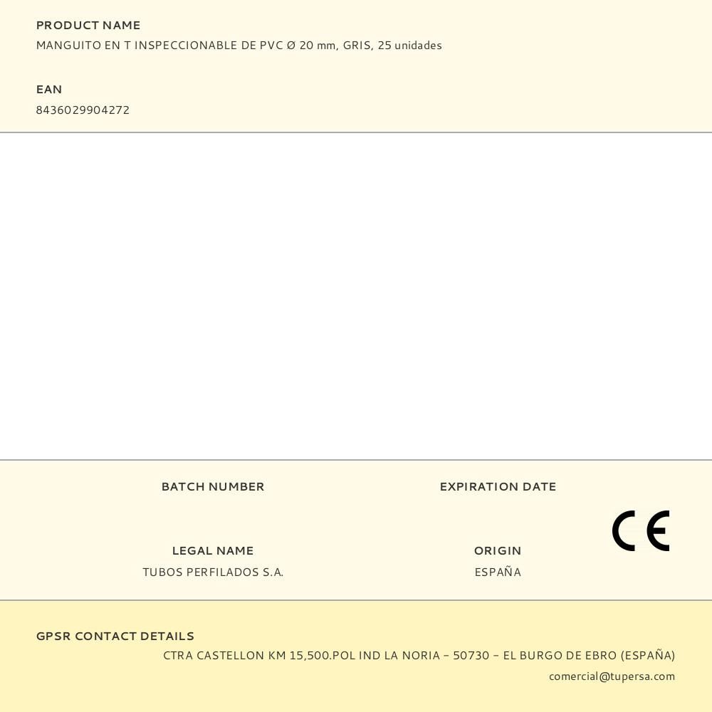 MANGUITO EN T INSPECCIONABLE DE PVC Ø 20 mm, GRIS, 25 unidades