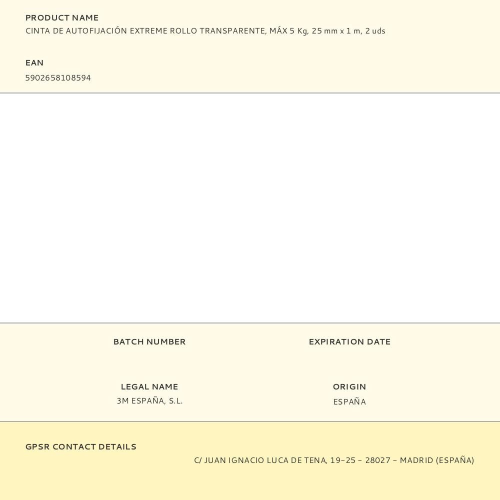 CINTA DE AUTOFIJACIÓN EXTREME ROLLO, TRANSPARENTE, 25 mm x 1 m, 2 uds, CIERRES REPOSICIONABLES, RF6760001SE, MÁX 5 Kg