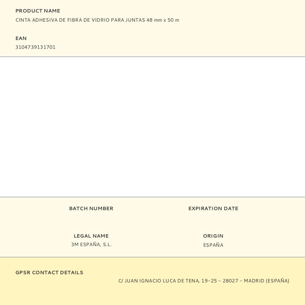 CINTA ADHESIVA DE FIBRA DE VIDRIO PARA JUNTAS 48 mm x 50 m