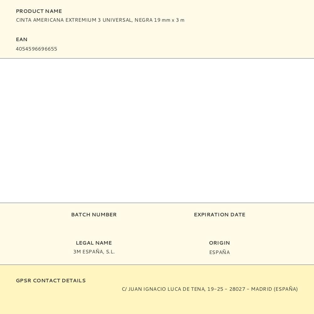 CINTA AMERICANA EXTREMIUM 3 UNIVERSAL, NEGRA 19 mm x 3 m