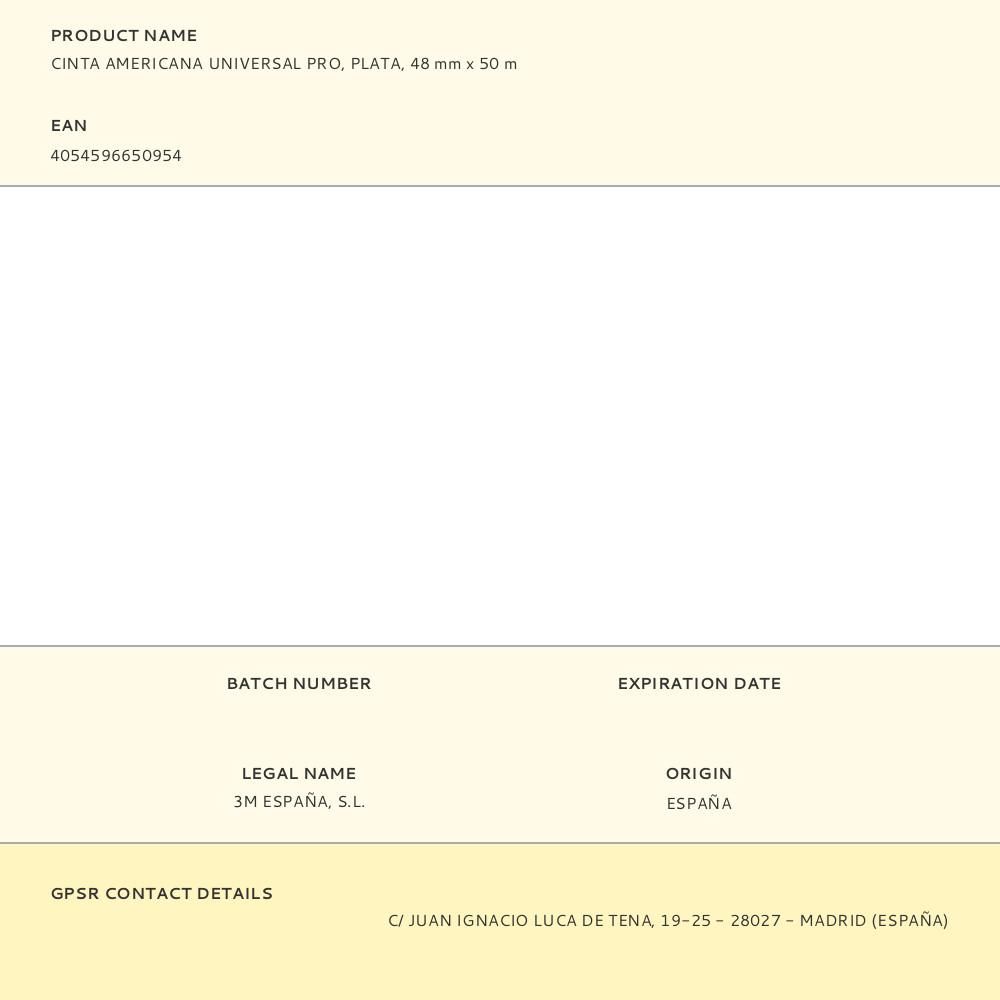 CINTA AMERICANA UNIVERSAL PRO, PLATA, 48 mm x 50 m