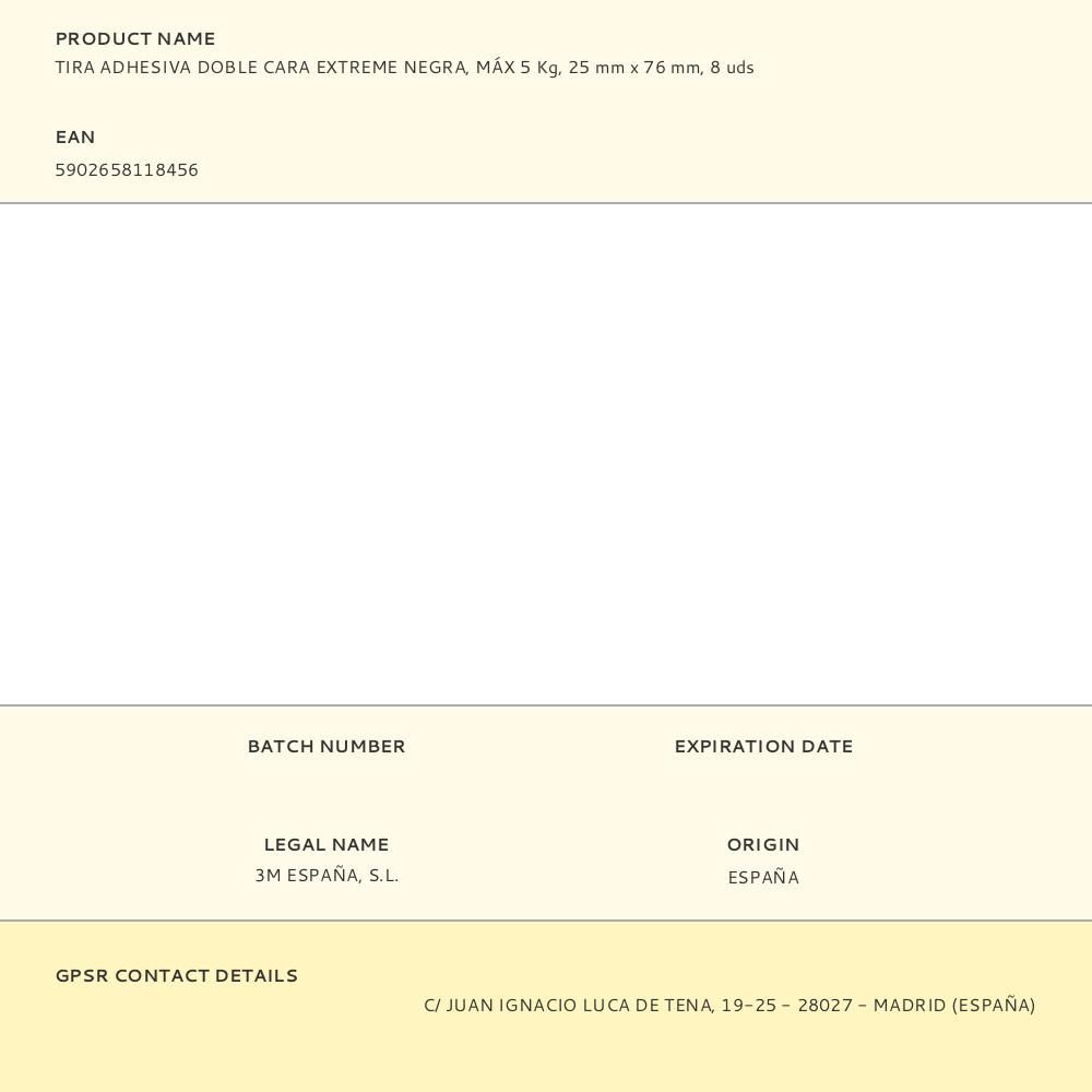 TIRA ADHESIVA DOBLE CARA EXTREME NEGRA, MÁX 5 Kg, 25 mm x 76 mm, 8 uds