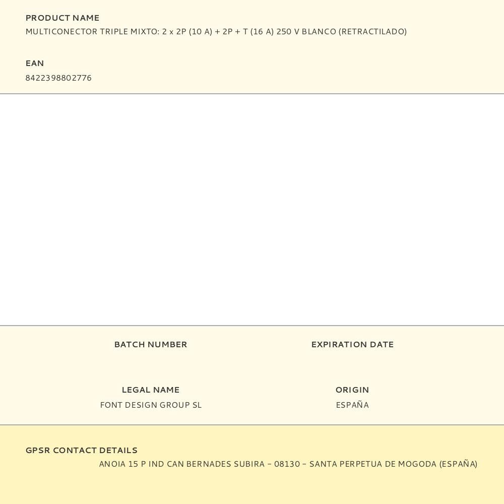 MULTICONECTOR TRIPLE MIXTO: 2 x 2P (10 A) + 2P + T (16 A) 250 V BLANCO (RETRACTILADO)
