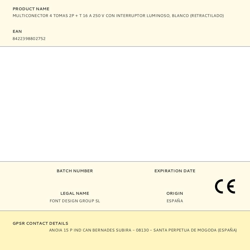 MULTICONECTOR 4 TOMAS 2P + T 16 A 250 V CON INTERRUPTOR LUMINOSO, BLANCO (RETRACTILADO)