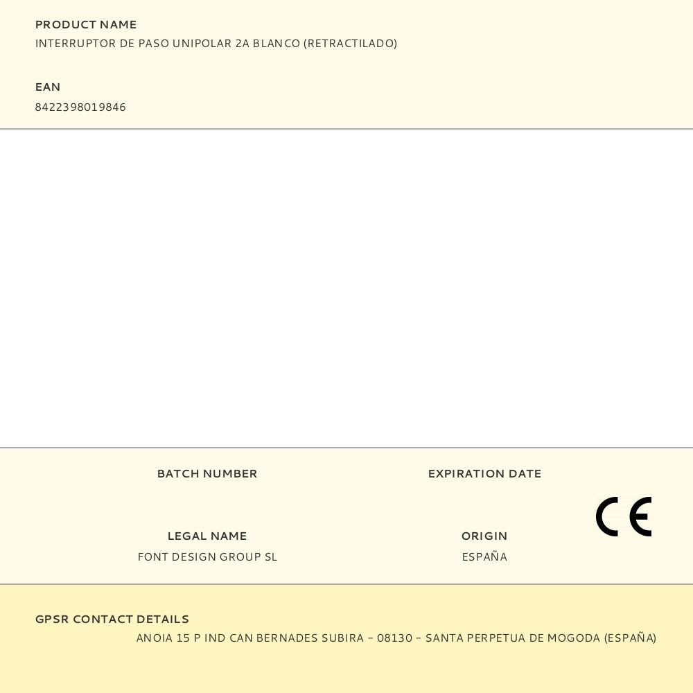 INTERRUPTOR DE PASO UNIPOLAR 2A BLANCO (RETRACTILADO)
