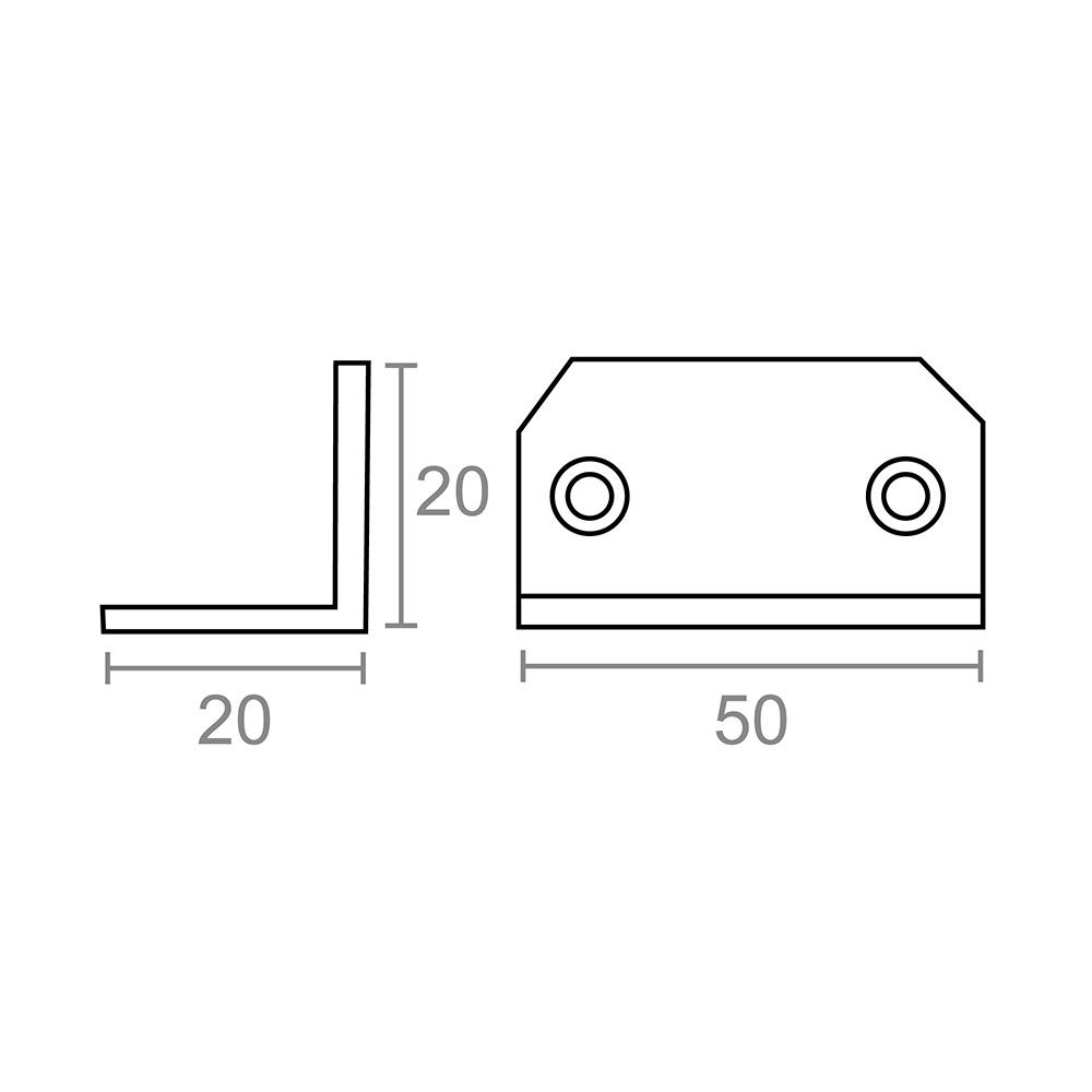 ÁNGULO DE REFUERZO EN ACERO DE 20 x 20 x 50 mm. ESPESOR DE 1 mm. ACABADO ZINCADO